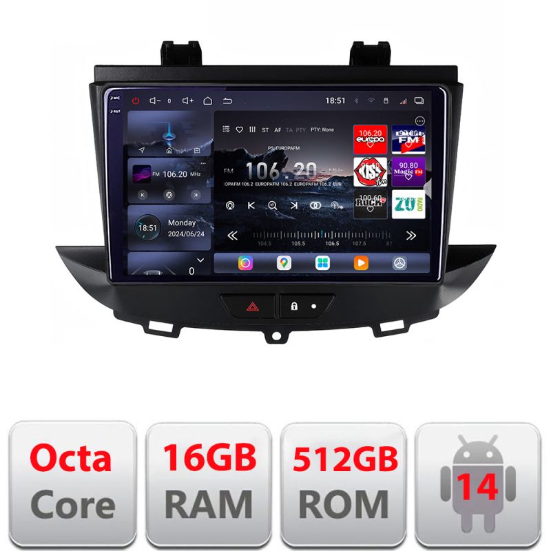 Navigatie Opel Grandland X Crossland X 2016-2020 Qled 2K Octa Core 16+512 LTE 4G DSP Wifi 5Ghz android auto carplay radio gps internet Kit-+EDT-E809-2K