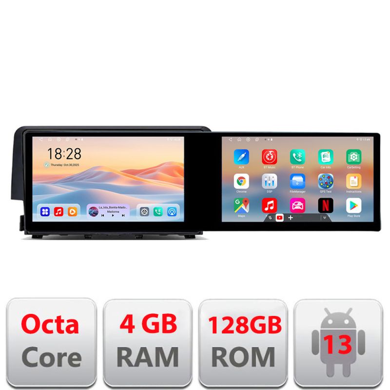 Navigatie Honda Civic 2016-2020 Kit-669 Edotec 2 ecrane 8 core 4+128 21.6 inch Incell android Wifi 5Ghz gps internet