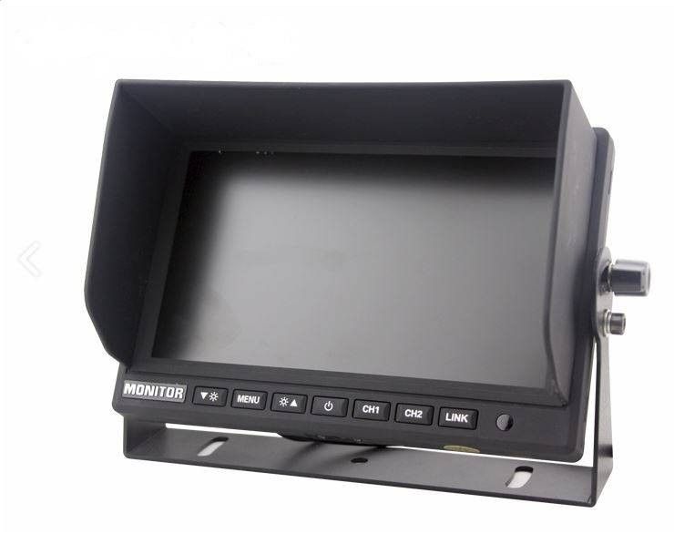 Monitor cu ecran TFT de 7' cu panou A+ pentru camera marsarier dube si camioane. Cu raport de imagine 16:9 si rezolutie de 1024*600 RGB si 2 canale video, telecomanda, 1 canal intrare audio, difuzor incorporat si parasolar detasabil.