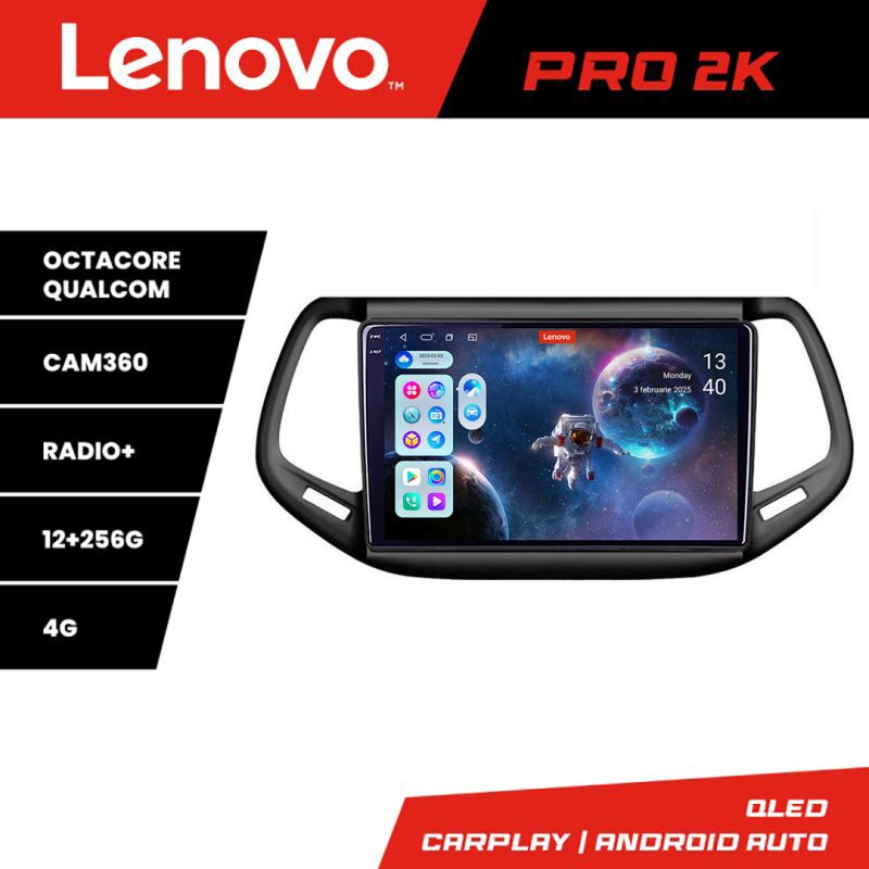 Navigatie Jeep Compass 2017 Lenovo Kit-739 8 core QLED 2K 12+256 360 Android Waze USB Navigatie Internet Youtube Radio