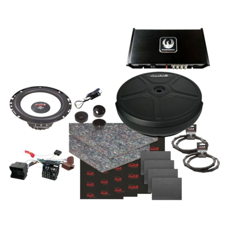 Pachet SQ - difuzoare fata + spate MX EVO cu amplificator cu DSP ZDA4.6, subwoofer roata rezerva, inele si cablaje plug&play pe masina