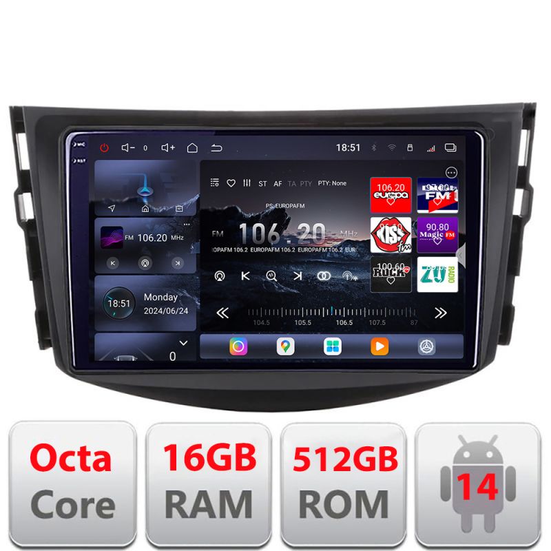 Navigatie Toyota RAV4 2008-2012 Edotec Kit-018 8 core QLED 2K 16+512GB 360 Android Waze USB Navigatie Internet Youtube Radio