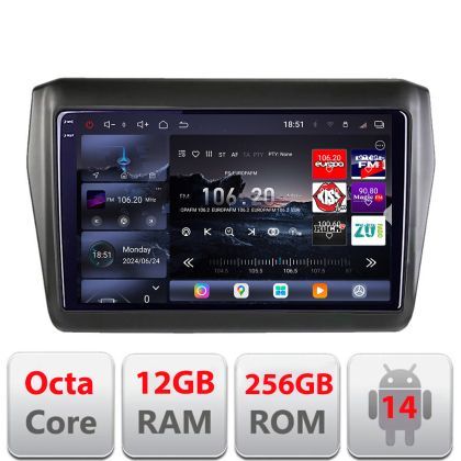 Navigatie Suzuki Swift 2017- Edotec Kit-2179 8 core QLED 2K 12+256GB 360 Android Waze USB Navigatie Internet Youtube Radio