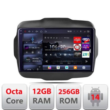 Navigatie Jeep Renegade 2015-2020 Edotec Kit-500 8 core QLED 2K 12+256GB 360 Android Waze USB Navigatie Internet Youtube Radio