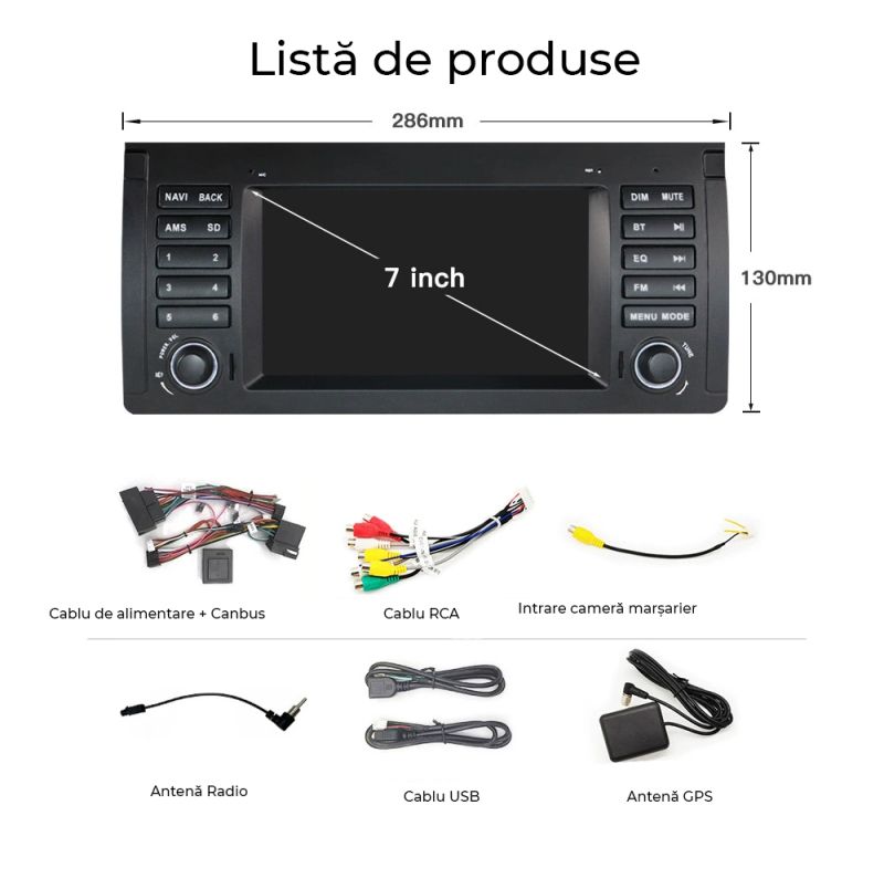 Navigație BMW Seria 5 E39 X5 E53 M5, 7 inci